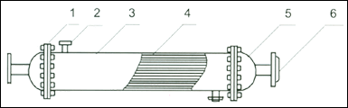 1. Flange 2. Inlet and outlet section tube 3. Shell 4. Tube 5. Head 6. Inlet and outlet pipe