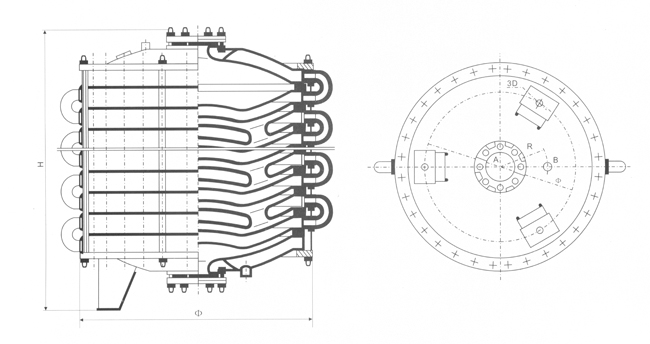 (1)This type of condensers is composed of two products W-0.5 and W-1.The working(condensing) area for each leaf is 0.5m2 for the W-0.5 condenser and 1m2 for W-1 condenser.The diameter of condenser is 700mm and 960mm for the two products respectively.The rating condensing area of 1.5m2 through 15m2 is available,which is to be chosen at the customer's request£®